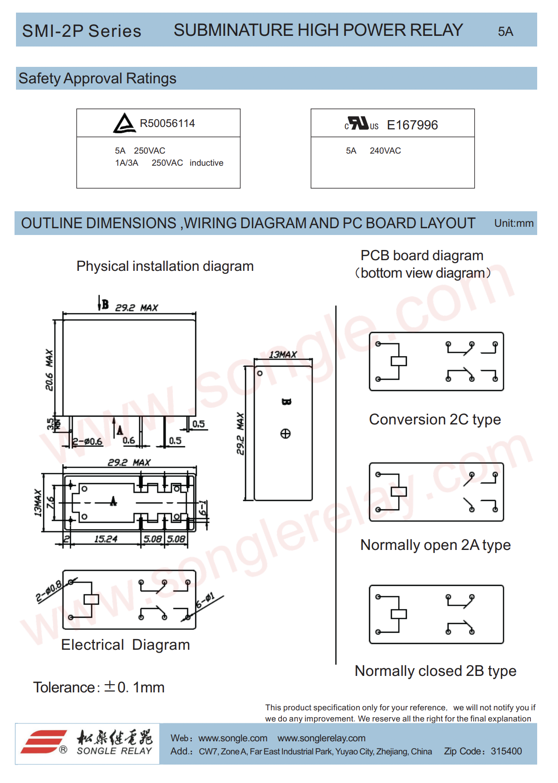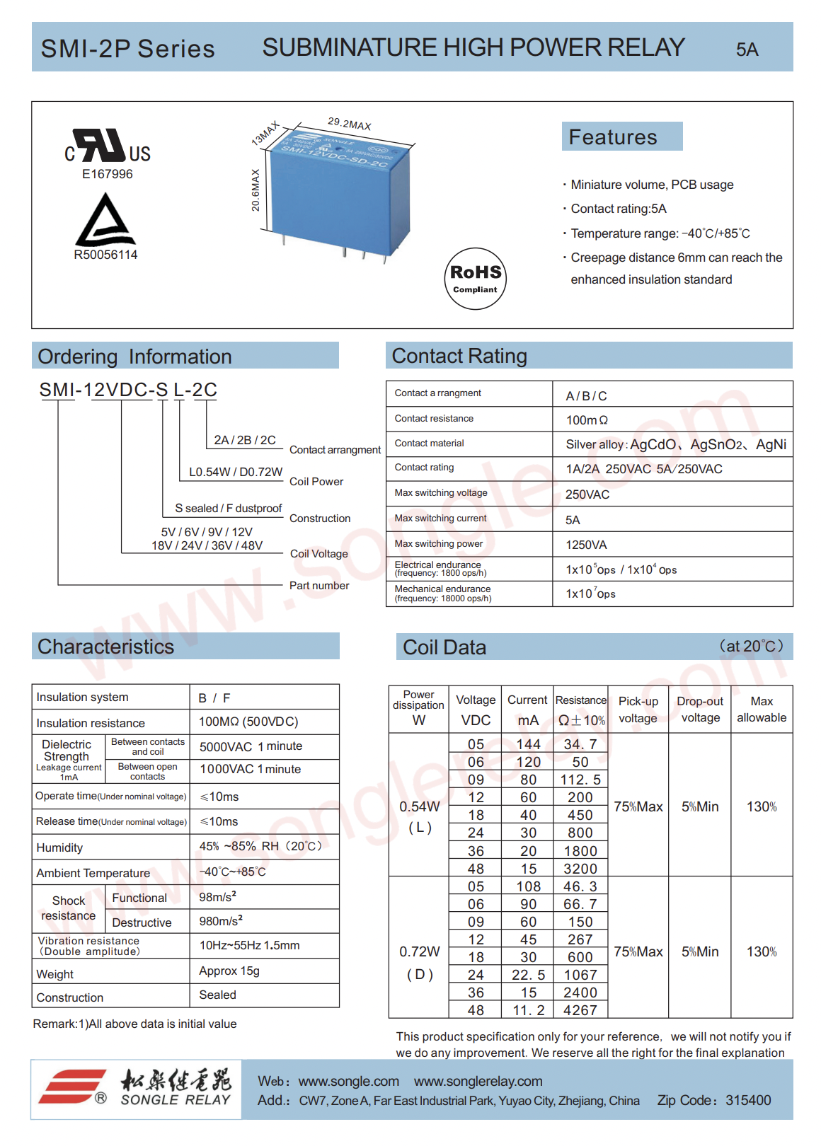 (1ตัว)[RLY] Songle Relay 12V หรือ 24V SMI-12/24VDC-SL-2C(8ขา) 5A/250Vac/30Vdc