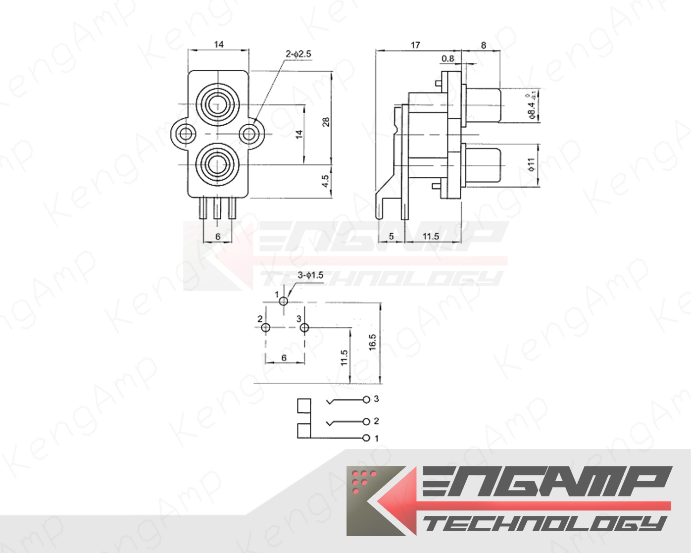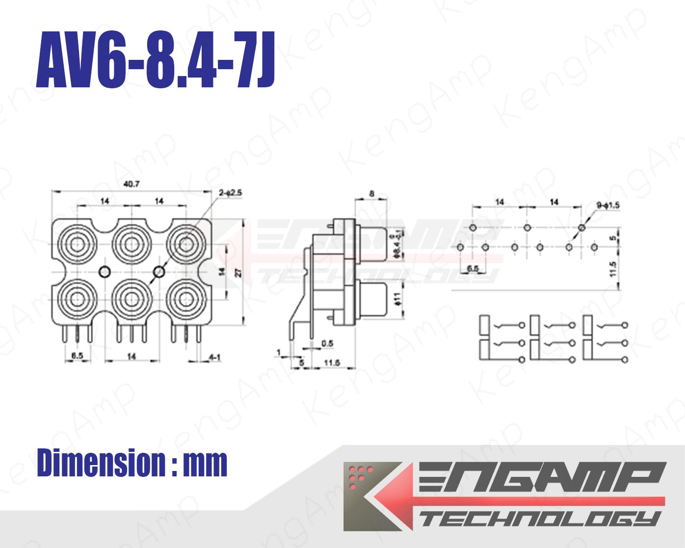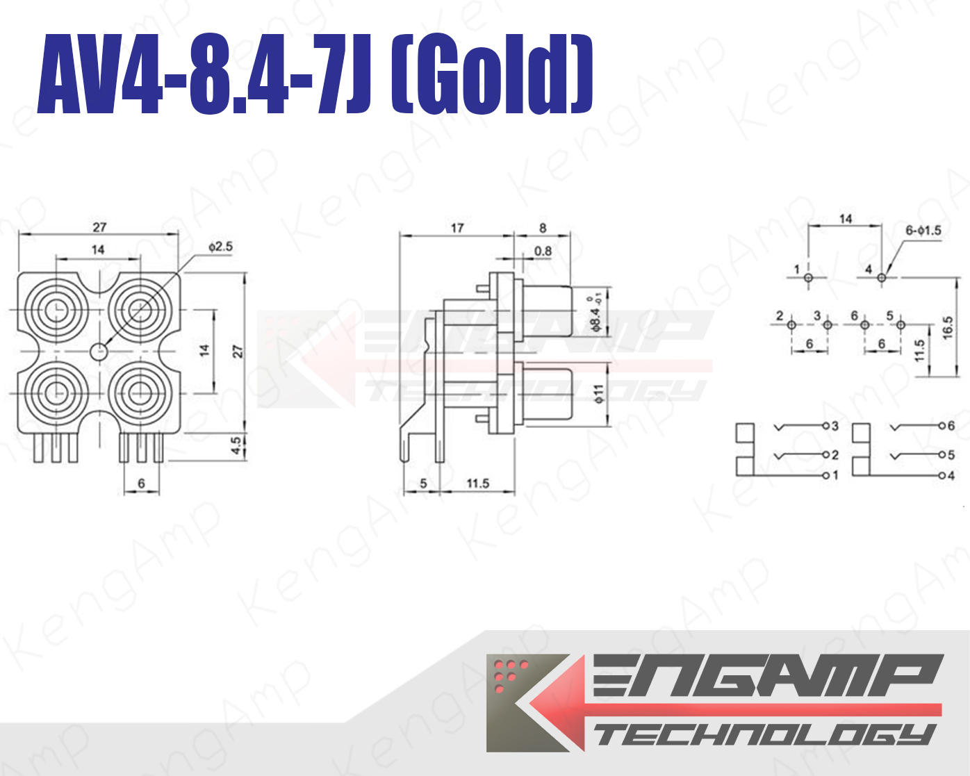 (1ชิ้น) [PJ] AV2-8.4-7J AV4-8.4-7J AV6-8.4-7JGold แจ็ค RCA 2P 4P 6P ติดแท่นขาลงปริ้น ดำชุบทอง