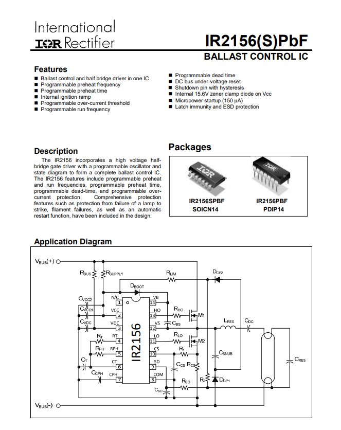 (1ตัว) [IC] IR2156S BALLAST CONTROL IC